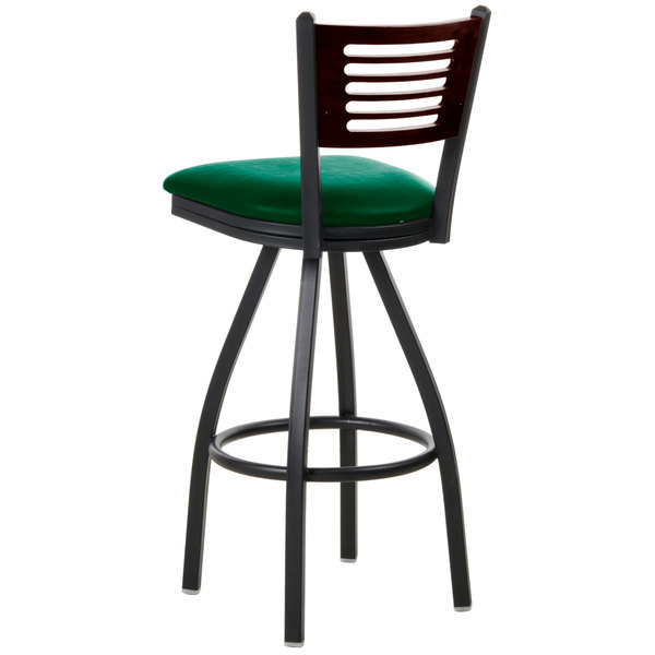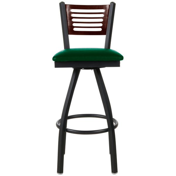 Brand new ???? BFM Seating 2151SGNV-WASB Espy Sand Black Metal Bar Height Chair With Walnut Wooden Back And 2″ Green Vinyl Swivel Seat ✔️
