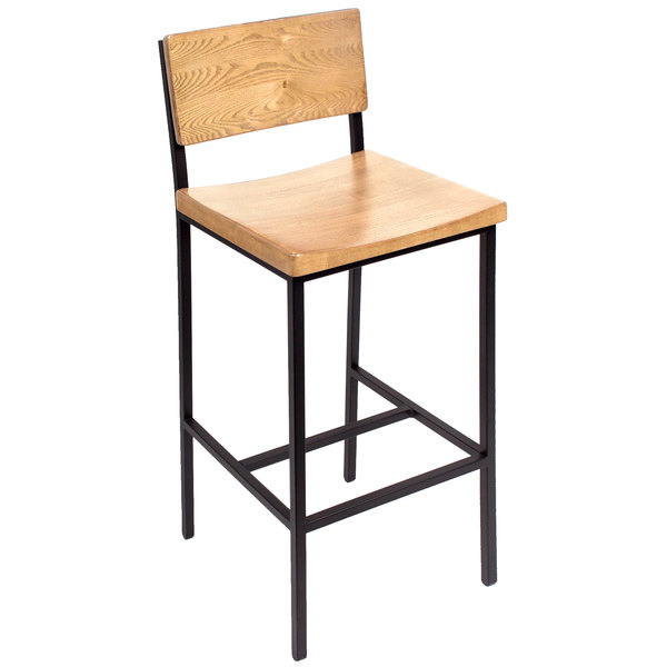 Outlet ???? BFM Seating JS33BNTW-SB Memphis Sand Black Steel Bar Height Chair With Natural Ash Wooden Back And Seat ????
