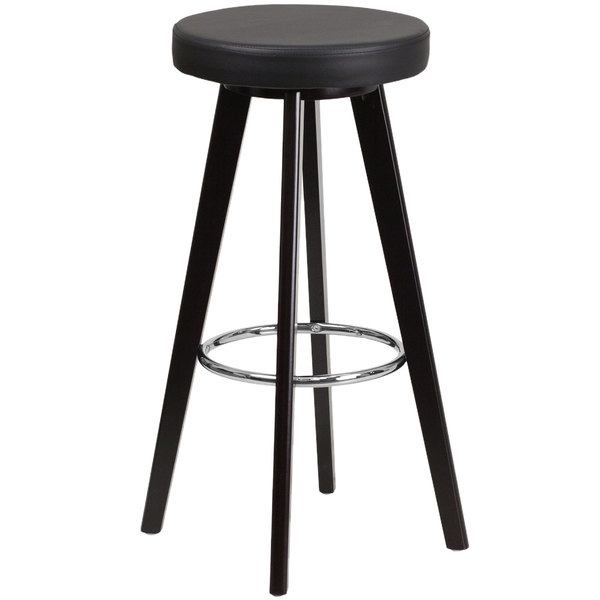 Budget ❤️ Flash Furniture CH-152601-BK-VY-GG Trenton Series Cappuccino Wood Bar Height Stool With Black Vinyl Seat ⌛
