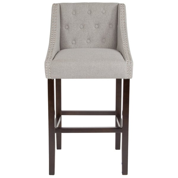 Hot Sale ❤️ Flash Furniture CH-182020-T-30-LTGY-F-GG Carmel Series Light Gray Tufted Fabric Bar Stool With Walnut Frame And Nail Trim Accent ⭐