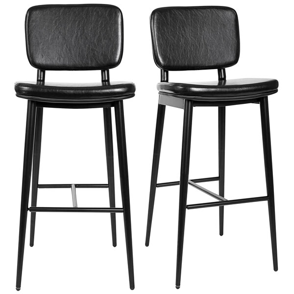 Use this Flash Furniture Kenzie black LeatherSoft mid-back barstool to seat your guests in comfort and style and bring a modern look to your business. Made of soft and durable LeatherSoft upholstery, it’s perfect for upscale hotel bars and restaurants. The barstool has a generously padded back and seat to provide comfortable seating whether over a meal or drink. With a mid-back design, this barstool assists with posture control while allowing guests to maintain movement while seated. For more comfortable seating, the footrest’s H-shape eases pressure from the legs, and the sturdy powder coated iron frame with metal screw reinforcements ensures durability and stable seating. It comes with adjustable plastic glides to help protect your hard floors from scratching as well as keeps the stool level. The black LeatherSoft upholstery will provide a sleek look to your business whether placed at a high table for drinks to standing alone for extra seating in your establishment. Easy to put together, this barstool can be assembled within 30 minutes. It’s also easy to clean with just a dry cloth. No matter where you place this barstool, it’s the perfect addition to your business. Overall Dimensions: Width: 18″ Depth: 19 1/2″ Height: 42″ Capacity: 300 lb.