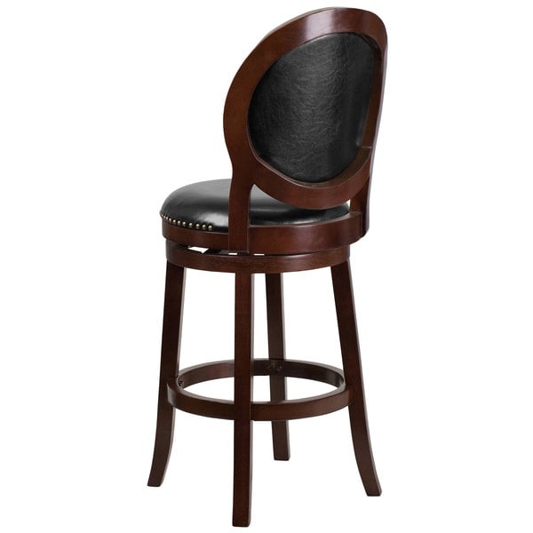Best Pirce ???? Flash Furniture TA-550130-CA-GG Cappuccino Wood Bar Height Oval Back Stool With Black Leather Swivel Seat ❤️