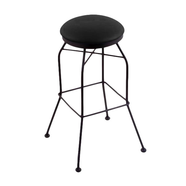Complete your contemporary dining area with this Holland Bar Stool 302030BWBlkVinyl black wrinkle steel bar height swivel stool with black vinyl seat! Not only does it feature a cushioned, vinyl seat for unmatched comfort and support, but it also has a swivel design that allows patrons to easily turn their chairs and socialize with other guests. Plus, a convenient footrest helps reduce pressure on guests’ legs and lower backs for increased comfort. This stool’s black wrinkle, powder-coated steel frame combines exceptional durability with a modern aesthetic, while its welded construction creates a stable foundation that supports up to an impressive 350 lb. weight capacity. Add this sturdy, stylish stool to your indoor bar or high top tables and ensure your guests comfortably enjoy their dining experience! Overall Dimensions: Width: 16″ Depth: 16″ Height: 30″ Capacity: 350 lb.
