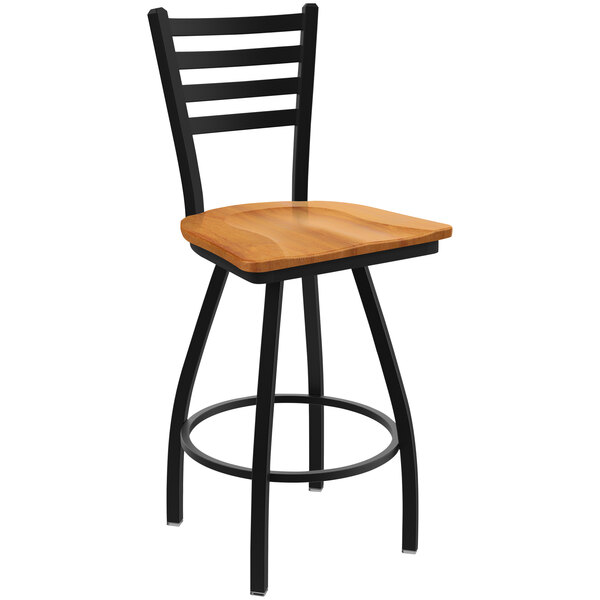 Hot Sale ???? Holland Bar Stool XL 410 Jackie 30″ Ladderback Swivel Bar Stool With Black Wrinkle Finish And Medium Maple Seat ????