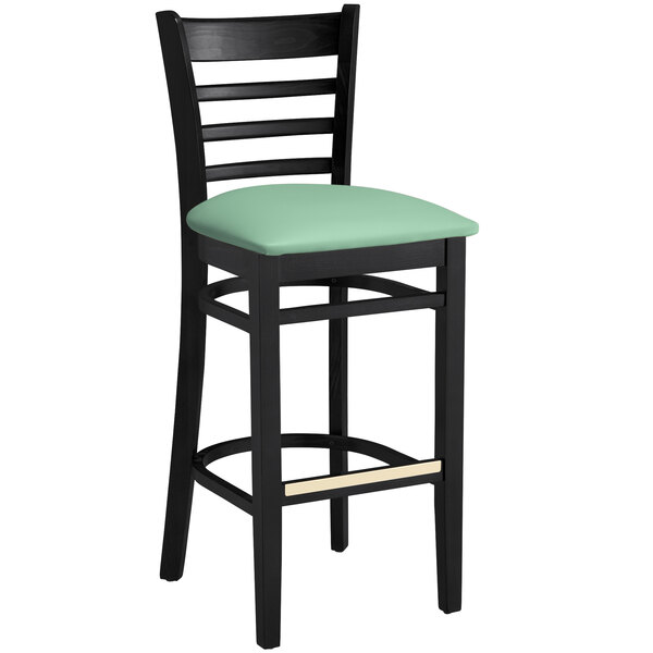 Hot Sale ???? Lancaster Table & Seating Black Finish Wooden Ladder Back Bar Height Chair With Seafoam Padded Seat ????