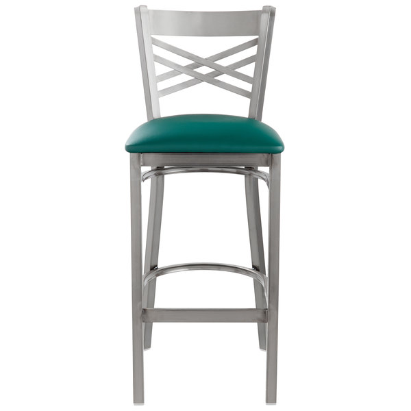 Best Sale ???? Lancaster Table & Seating Clear ???? Coat Steel Cross Back Bar Height Chair With 2 1/2″ Green Vinyl Seat ????