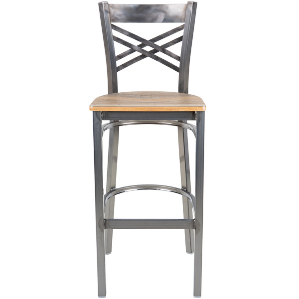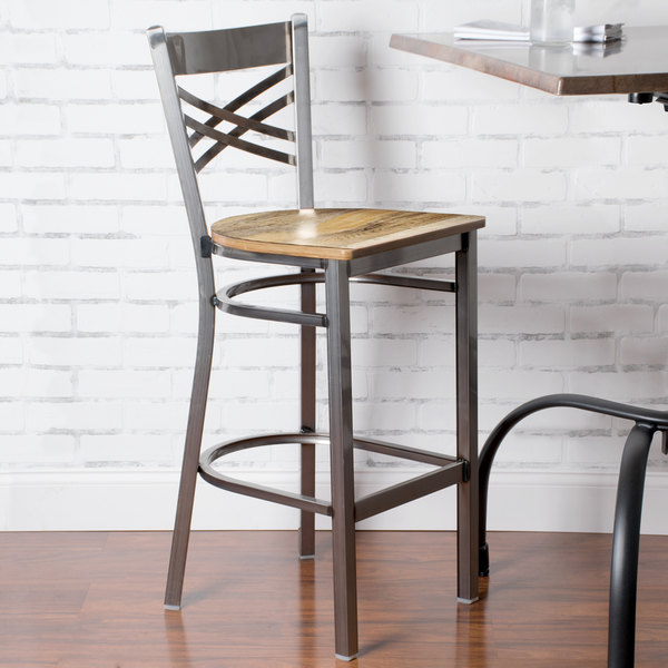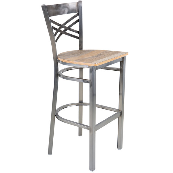 Coupon ???? Lancaster Table & Seating Clear ???? Coat Steel Cross Back Bar Height Chair With Driftwood Seat ????