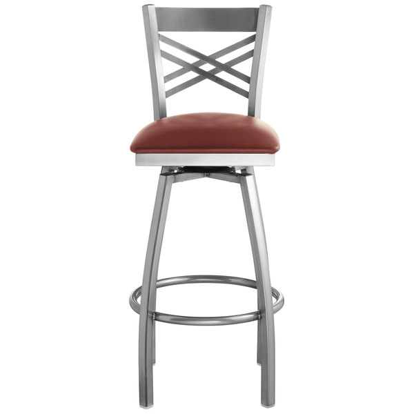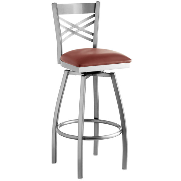 Flash Sale ✨ Lancaster Table & Seating Clear ???? Coat Steel Cross Back Bar Height Swivel Chair With 2 1/2″ Burgundy Vinyl Seat ✔️
