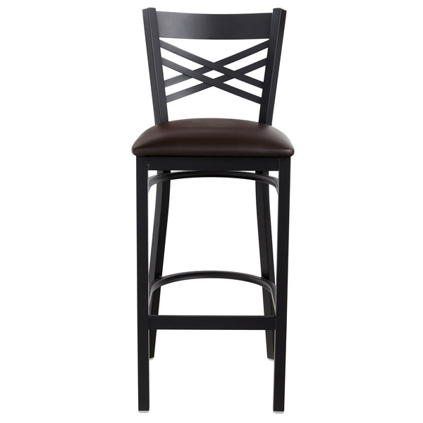 Promo ???? Lancaster Table & Seating Cross Back Bar Height Black Chair With Dark Brown Vinyl Seat ????
