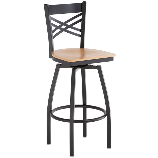 Wholesale ???? Lancaster Table & Seating Cross Back Bar Height Black Swivel Chair With Natural Wood Seat ????