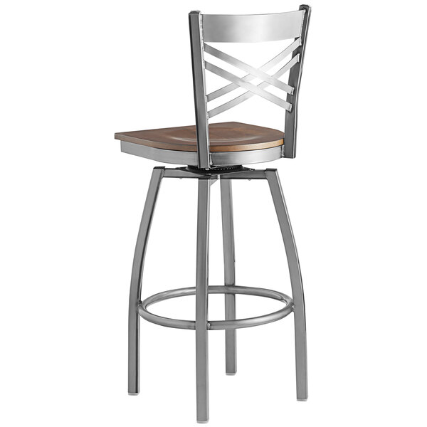 Brand new ???? Lancaster Table & Seating Cross Back Bar Height Clear ???? Coat Swivel Chair With Vintage Wood Seat ✨