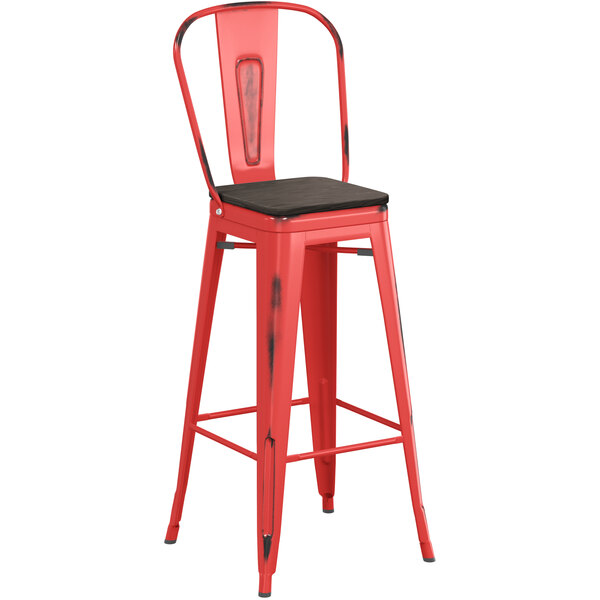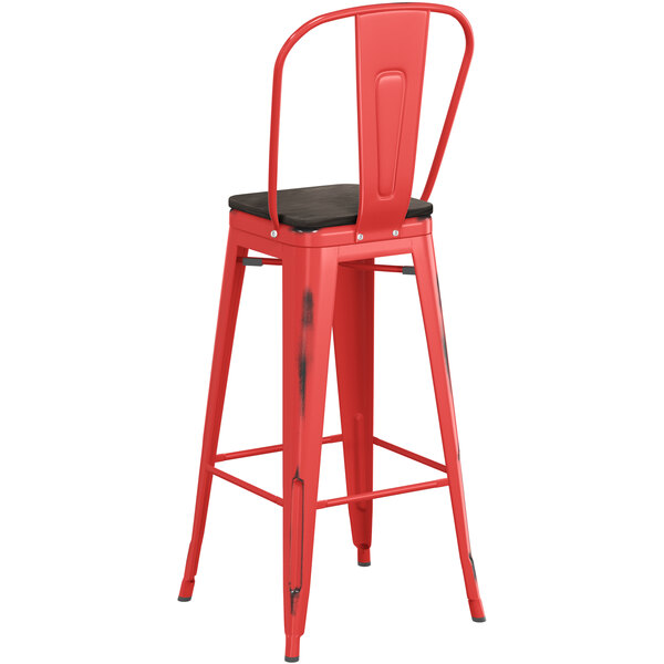 Buy ???? LT&S Alloy Series Lancaster Table & Seating Alloy Series Distressed Red Metal Indoor Industrial Cafe Bar Height Stool With Vertical Slat Back And Black Wood Seat ⌛