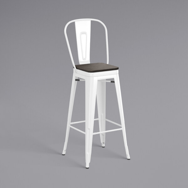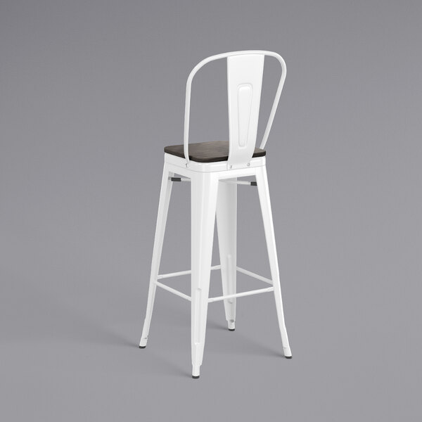 Hot Sale ???? LT&S Alloy Series Lancaster Table & Seating Alloy Series White Metal Indoor Industrial Cafe Bar Height Stool With Vertical Slat Back And Black Wood Seat ❤️