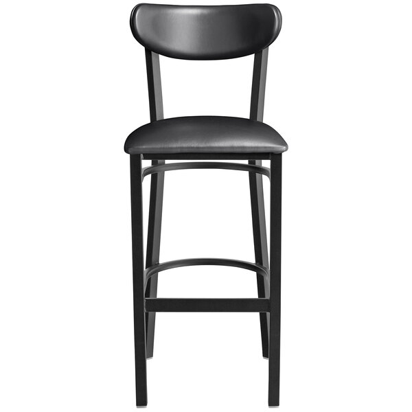 Seat your guests in comfort and style with this Lancaster Table & Seating Boomerang bar height chair with blackvvinyl seat and back! The Boomerang design is both sturdy and stylish, instilling a modern look in any location. Its reliable and modern design ensures you’ll be using this bar height chair in your pub or restaurant for years to come.