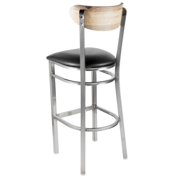 Wholesale ✔️ LT&S Boomerang Series Lancaster Table & Seating Boomerang Bar Height Clear ???? Coat Chair With Black Vinyl Seat And Driftwood Back ????