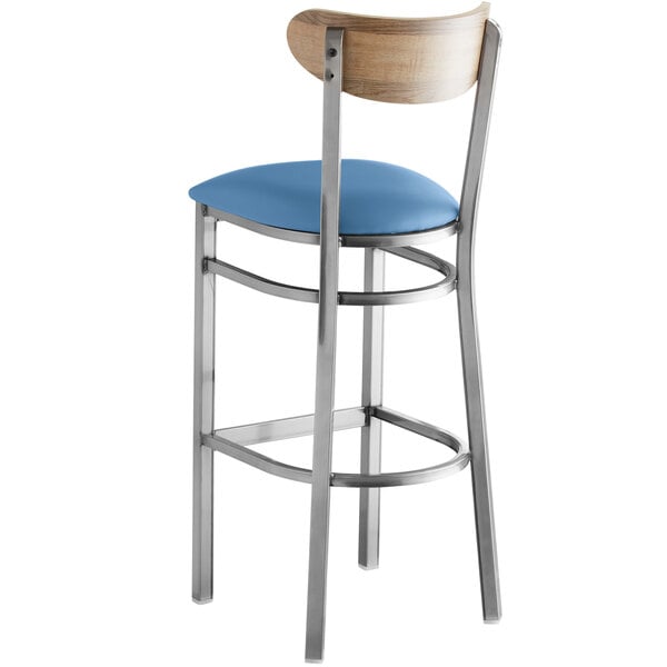 Outlet ???? LT&S Boomerang Series Lancaster Table & Seating Boomerang Bar Height Clear ???? Coat Chair With Blue Vinyl Seat And Driftwood Back ????