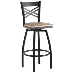 Cheapest 🤩 Lancaster Table & Seating Cross Back Bar Height Black Swivel Chair With Driftwood Seat 🎁