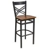 The BFM Seating 2130BBLW-SB Akrin sand black steel bar height chair with cross steel back and black wooden seat is an ideal seating solution for indoor restaurants, bars, and bistros! Its armless design allows guests to access the seat from any direction and easily maneuver to converse with other patrons, while its stylish, cross back adds a decorative touch and offers optimal spinal support. The wooden seat’s professional, black finish lends a sophisticated appearance to dining areas. Plus, it has a convenient footrest to reduce the pressure on customers’ legs and lower backs and promote relaxation. Made of welded steel, the chair’s sand black frame creates a sturdy, stable foundation that’s able to withstand daily, heavy-duty use. Its legs are also capped with plastic glides that protect floors from scuff marks and slide smoothly, helping to keep loud, unwanted noise to a minimum. Boasting an ample 250 lb. weight capacity, this strong, attractive Akrin chair is the perfect addition to your trendy venue! Overall Dimensions: Width: 17 1/2″ Depth: 18 1/4″ Height: 43 3/4″ Capacity: 250 lb. Seat Dimensions: Width: 17 1/2″ Depth: 16 1/2″ Height: 30″