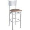Ensure that your guests enjoy an ideal dining experience with this BFM Seating 2140BRCR-SM Axel silver mist steel solid back barstool with Relic rustic copper melamine seat. Perfect for bars, bistros, restaurants, or coffee shops, this item features an attractive yet durable steel frame with a silver mist powder coat finish. Its solid back design also offers optimal spinal support for increased comfort. It even pairs beautifully with the unique industrial feel of the Relic rustic copper seat! Plus, the melamine seat comes with a matching color fast PVC edge and mimics the look of stone without the extra cost and potentially cumbersome weight. Additionally, the convenient footrest helps reduce pressure on customers’ lower backs and legs. Made of welded 18 gauge steel, this barstool supplies a trendy look with a dependable foundation that’s able to withstand the wear and tear of everyday use. The melamine seat also provides better durability, while its MDF (medium-density fiberboard) core remains largely unaffected by changes in temperature or humidity. This barstool even features a 300 lb. weight capacity, making it an excellent seating option that your guests can rely on. Plus, its legs are capped with plastic glides that protect floors from scuff marks and slide smoothly to keep loud, unwanted noise to a minimum. Add this chair to your indoor bar height tables or countertops and allow your guests to enjoy their drinks, appetizers, entrees, or desserts in comfort! Overall Dimensions: Width: 17 1/4″ Depth: 18″ Height: 43 3/4″ Seat Width: 17 1/4″ Seat Depth: 16 1/2″ Seat Height: 30 1/2″ Back Height: 13 1/4″ Weight Capacity: 300 lb.