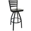 Whether patrons are sitting down for an intimate lunch at your bistro or a cup of coffee in your cafe, this BFM Seating 2160SASH-SB Lima sand black steel bar height chair with autumn ash wooden swivel seat is sure to present them with a comfortable place to sit. Not only does its ladder back provide optimal support, it also adds a distinct visual appeal to your restaurant, bar, cafeteria. Plus, it features a contoured seat for superior comfort, a swivel design that allows patrons to easily turn in their chairs and socialize with other guests, and a convenient footrest to reduce the pressure on customers’ legs and lower backs. Made of durable steel, this chair’s black frame creates a sturdy, stable foundation that’s able to withstand daily, heavy-duty use. Its legs are also capped with plastic glides that protect floors from scuff marks and slide smoothly, helping to keep loud, unwanted noise to a minimum. Boasting an ample 250 lb. weight capacity, this strong, attractive Lima chair provides guests with a way to comfortably enjoy your signature drinks, appetizers, entrees, and desserts! Overall Dimensions: Height: 42″ Depth: 18 1/4″ Seat Width: 17 1/2″ Seat Depth: 16 1/2″ Seat Height: 30″ Capacity: 250 lb.