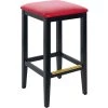 Add comfortable, modern seating to any area with this BFM Seating Stockton black beechwood square backless barstool with 2″ light brown vinyl seat. This barstool boasts a durable beechwood construction that resists chipping and scratching more than traditional woods. Its black stain creates a sleek, modern appearance while also helping to hide signs of wear better than lighter finishes. Plus, this barstool features a dipped, catalyzed lacquer finish that provides additional durability and accentuates the natural wood grain of the barstool’s frame. This Stockton barstool features a 2″ thick padded light brown vinyl seat for exceptional comfort and can be quickly cleaned with a vinyl cleaner or warm, soapy water. Its backless design offers your guests a wider range of motion than traditional barstools. It also has a convenient metal footrest to minimize wear and tear on the frame while reducing pressure on customers’ legs and lower backs for optimal relaxation. With its sleek styling, this BFM Seating Stockton barstool is sure to add contemporary flair to any of your seating areas. Overall Dimensions: Width: 15 3/4″ Depth: 15 1/2″ Height: 30″ Seat Width: 16 1/2″ Seat Depth: 16 1/2″ Seat Height: 30″ Weight Capacity: 250 lb.