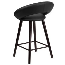Add contemporary flair to any space with this Flash Furniture CH-152551-BK-VY-GG Kelsey series cappuccino wood counter height stool with black vinyl seat! This stool features a smooth, black vinyl seat that contours comfortably to the user so that they can sip cocktails, share appetizers, or socialize at ease and in style. The rounded low back reduces lower back pressure, and a foot rest provides additional comfort and convenience. Cappuccino wood finished legs are capped with protective floor glides to keep your floors in pristine condition. The lightweight design is easy to move and transport and is best suited for low-traffic areas or light-duty use. Make sure you have plenty of seating available with this Flash Furniture counter height stool! Overall Dimensions: Width: 22″ Depth: 19 1/2″ Height: 32 1/2″ Capacity: 330 lb. Seat Dimensions: Width: 13″ Depth: 15″ Height: 24 1/2″ Back Dimensions: Width: 12″ Height: 9 1/2″