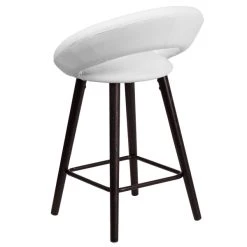 Add contemporary flair to any space with this Flash Furniture CH-152551-WH-VY-GG Kelsey series cappuccino wood counter height stool with white vinyl seat! This stool features a smooth, white vinyl seat that contours comfortably to the user so that they can sip cocktails, share appetizers, or socialize at ease and in style. The rounded low back reduces lower back pressure, and a foot rest provides additional comfort and convenience. Cappuccino wood finished legs are capped with protective floor glides to keep your floors in pristine condition. The lightweight design is easy to move and transport and is best suited for low-traffic areas or light-duty use. Make sure you have plenty of seating available with this Flash Furniture counter height stool! Overall Dimensions: Width: 22″ Depth: 19 1/2″ Height: 32 1/2″ Capacity: 330 lb. Seat Dimensions: Width: 13″ Depth: 15″ Height: 24 1/2″ Back Dimensions: Width: 12″ Height: 9 1/2″