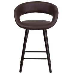 Add contemporary flair to any space with this Flash Furniture CH-152561-BRN-VY-GG Brynn series cappuccino wood counter height stool with brown vinyl seat! This stool features a smooth, brown vinyl seat that contours comfortably to each user so that they can sip cocktails, share appetizers, or socialize at ease and in style. The rounded low back reduces lower back pressure, and a foot rest provides additional comfort. Arm rests ensure a soft, designated place for guests to rest their arms. Cappuccino wood finished legs are capped with protective floor glides to keep your floors in pristine condition. The lightweight design is easy to move and transport and is best suited for low-traffic areas or light-duty use. Make sure you have plenty of seating available with this Flash Furniture counter height stool! Overall Dimensions: Width: 22″ Depth: 19″ Height: 33 1/4″ Capacity: 330 lb. Seat Dimensions: Width: 16″ Depth: 15 1/2″ Height: 23 3/4″ Back Dimensions: Width: 10″ Height: 10″