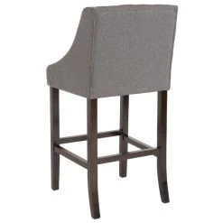 Dine and drink in style with this classy Flash Furniture CH-182020-T-30-DKGY-F-GG Carmel Series dark gray tufted fabric bar stool with walnut frame and nail trim. This stool is a perfect addition to any space and is comfortable enough to relax in and elegant enough to complement brighter decor in a well-lit room as well. This classy bar height stool features a deep seat, supportive back, and nails accenting the curve of the arms. The dark gray tufted upholstery provides noble charm to this comfortable stool so that you can enjoy it day in and day out. This stool features added safety in the fire retardant foam padding that cushions the seat and back of the barstool. The sturdy walnut frame has a foot rest for added comfort and stability and is finished off with protective rubber floor glides to ensure the chairs tuck in smoothly and that your floors stay free from scuffs and scratches. The dark gray tufted upholstery seamlessly complements the walnut frame making this barstool easy to pair with the table or bar of your choice. This bar stool is not intended for commercial use. In the absence of product-specific restrictions and weight limits, normal usage means use for no more than 40 hours per week by persons weighing 250 lbs. or less. Overall Dimensions: Width: 20″ Depth: 22″ Height: 42″ Seat Dimensions Width: 17″ Depth: 17″ Height: 30″ Back Dimensions Width: 16″ Height: 13 1/2″