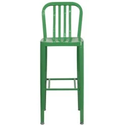 Create an urban look and feel to your dining area with this Flash Furniture CH-61200-30-GN-GG 30″ green metal indoor / outdoor bar height stool with vertical slat back! While its vertical slat back provides firm spinal support, the flat seat is easy to clean and ensures guests are at a comfortable height to enjoy your signature drinks, appetizers, entrees, and desserts. Made of sturdy galvanized steel, this chair is durable enough to withstand years of use. Thanks to its lightweight design, this chair allows for easy movement and transportation. Plus, it boasts convenient rubber glides to help keep floor surfaces in pristine condition. With a bright green powder coat finish, this chair is sure to be an excellent addition to your indoor or outdoor restaurant, bistro, or cafe. Overall Dimensions: Width: 15 1/2″ Depth: 20″ Height: 43″ Weight Capacity: 500 lb. Seat Dimensions: Width: 15 1/2″ Depth: 14″ Height: 30″ Back Dimensions: Width: 15 1/2″ Height: 13 3/4″