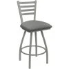 Complete your contemporary dining area with this Holland Bar Stool XL 410 Jackie 30″ ladderback swivel bar stool with anodized nickel finish and dark cherry oak seat. This stool features a durable, 16 gauge, 1 1/4″ tube steel frame with mig welded joints, providing outstanding durability. As a part of the XL line, its seat is 2″ wider and 1″ deeper than standard seats, making it perfect for patrons of all sizes and body types. Plus, it boasts an ample weight capacity of 750 lbs., and a powder coated anodized nickel finish to resist scratches and chips. This bar stool is made with a supportive foot rest and back, and a 1 1/4″ thick solid hardwood dark cherry oak seat that is both attractive and comfortable for hours of use. The seat is finished with a 6 step process and sealed with catalyzed lacquer, ensuring a long product life. The swivel design of this bar stool allows patrons to turn in their seats so they can comfortably socialize and fully enjoy your venue. Its 30″ height is perfect for use at bars and high top seating areas. Add this sturdy, stylish stool to your establishment to ensure your guests comfortably enjoy their dining experience! Overall Dimensions: Width: 22″ Depth: 21″ Height: 44″ Capacity: 750 lb. Seat Dimensions: Height: 30″
