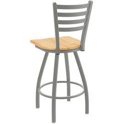 Complete your contemporary dining area with this Holland Bar Stool XL 410 Jackie 30″ ladderback swivel bar stool with anodized nickel finish and natural oak seat. This stool features a durable, 16 gauge, 1 1/4″ tube steel frame with mig welded joints, providing outstanding durability. As a part of the XL line, its seat is 2″ wider and 1″ deeper than standard seats, making it perfect for patrons of all sizes and body types. Plus, it boasts an ample weight capacity of 750 lbs., and a powder coated anodized nickel finish to resist scratches and chips. This bar stool is made with a supportive foot rest and back, and a 1 1/4″ thick solid hardwood natural oak seat that is both attractive and comfortable for hours of use. The seat is finished with a 6 step process and sealed with catalyzed lacquer, ensuring a long product life. The swivel design of this bar stool allows patrons to turn in their seats so they can comfortably socialize and fully enjoy your venue. Its 30″ height is perfect for use at bars and high top seating areas. Add this sturdy, stylish stool to your establishment to ensure your guests comfortably enjoy their dining experience! Overall Dimensions: Width: 22″ Depth: 21″ Height: 44″ Capacity: 750 lb. Seat Dimensions: Height: 30″
