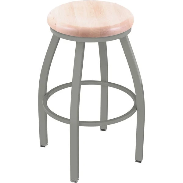 Complete your contemporary dining area with this Holland Bar Stool XL 802 Misha 30″ ladderback swivel bar stool with anodized nickel finish and natural maple seat. This stool features a durable, 16 gauge, 1 1/4″ tube steel frame with mig welded joints, providing outstanding durability. As a part of the XL line, its seat is 2″ wider and 1″ deeper than standard seats, making it perfect for patrons of all sizes and body types. Plus, it boasts an ample weight capacity of 750 lb., and a powder coated anodized nickel finish to resist scratches and chips. This bar stool is made with a supportive foot rest and a 1 1/4″ thick solid hardwood natural maple seat that is both attractive and comfortable for hours of use. The seat is finished with a 6 step process and sealed with catalyzed lacquer, ensuring a long product life. The swivel design of this bar stool allows patrons to turn in their seats so they can comfortably socialize and fully enjoy your venue. Its 30″ height is perfect for use at bars and high top seating areas. Add this sturdy, stylish stool to your establishment to ensure your guests comfortably enjoy their dining experience! Overall Dimensions: Width: 22″ Depth: 21″ Height: 44″ Capacity: 750 lb. Seat Dimensions: Height: 30″