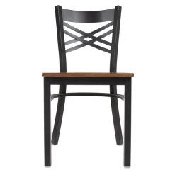 Featuring a durable plywood seat with a versatile walnut finish, combined with a contemporary steel frame and trendy cross back design, this Lancaster Table & Seating black cross back chair instills a modern look in any location. Plus, since the chair’s back is contoured for a customer’s back, it will provide unmatched comfort while maintaining a distinct appearance.