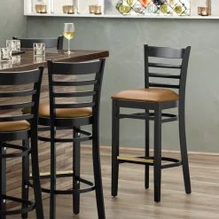 Discount ❤️ Lancaster Table & Seating Black Ladder Back Bar Height Chair With Light Brown Padded Seat 👍