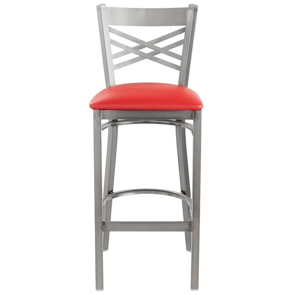 Cheap 😀 Lancaster Table & Seating Clear 🧥 Coat Steel Cross Back Bar Height Chair With 2 1/2″ Red Vinyl Seat 🛒
