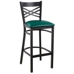Hot Sale ๐ฏ Lancaster Table & Seating Cross Back Bar Height Black Chair With Green Vinyl Seat โค๏ธ