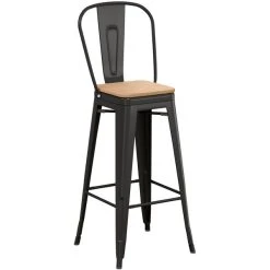 To ensure that your customers are free to enjoy your signature drinks, appetizers, entrees, and desserts, this industrial bar height stool features a supportive back and comfortable wooden seat that has been sealed to preserve and enhance its natural wood grain appeal for a high-quality look. Wood lends a certain feel of permanence and quality, showing your customers that you care. The stool features a footrest to reduce pressure on your customers’ legs and lower backs. It is also equipped with protective glides that help keep floor surfaces in pristine condition, making it an excellent choice for your indoor dining area.