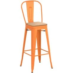 Coupon 🔥 LT&S Alloy Series Lancaster Table & Seating Alloy Series Orange Metal Indoor Industrial Cafe Bar Height Stool With Vertical Slat Back And Natural Wood Seat 🎁