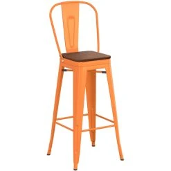 Outlet โ LT&S Alloy Series Lancaster Table & Seating Alloy Series Orange Metal Indoor Industrial Cafe Bar Height Stool With Vertical Slat Back And Walnut Wood Seat ๐