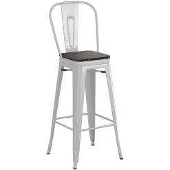 Budget 🌟 LT&S Alloy Series Lancaster Table & Seating Alloy Series Silver Metal Indoor Industrial Cafe Bar Height Stool With Vertical Slat Back And Black Wood Seat ✨