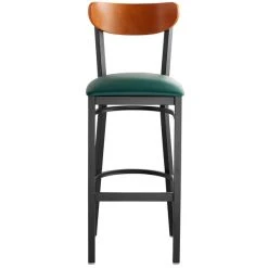 Best Pirce 🌟 LT&S Boomerang Series Lancaster Table & Seating Boomerang Bar Height Black Chair With Green Vinyl Seat And Cherry Back ⭐