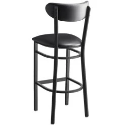 Seat your guests in comfort and style with this Lancaster Table & Seating Boomerang bar height chair with blackvvinyl seat and back! The Boomerang design is both sturdy and stylish, instilling a modern look in any location. Its reliable and modern design ensures you’ll be using this bar height chair in your pub or restaurant for years to come.