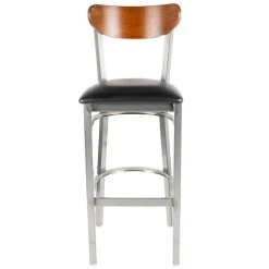 Seat your guests in comfort and style with this Lancaster Table & Seating Boomerang bar height chair with a black vinyl seat and antique walnut back. The Boomerang chair is both sturdy and stylish, instilling a modern look in any location. Its reliable and modern design ensures you’ll be using this bar height chair in your pub or restaurant for years to come.