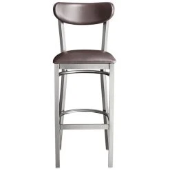 Seat your guests in comfort and style with this Lancaster Table & Seating Boomerang bar height chair with dark brown vinyl seat and back! The Boomerang design is both sturdy and stylish, instilling a modern look in any location. Its reliable and modern design ensures you’ll be using this bar height chair in your pub or restaurant for years to come.