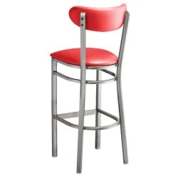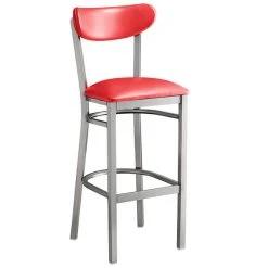 Seat your guests in comfort and style with this Lancaster Table & Seating Boomerang bar height chair with red vinyl seat and back! The Boomerang design is both sturdy and stylish, instilling a modern look in any location. Its reliable and modern design ensures you’ll be using this bar height chair in your pub or restaurant for years to come.