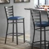 The Spartan series bar height metal ladder back chair with mahogany wood grain finish and black vinyl seat from Lancaster Table & Seating is a contemporary yet durable seating solution. This chair works well for bars, restaurants, clubs, and diners and will instantly upgrade the look and feel of your business. Its classic yet sophisticated design is built to withstand years of high volume use, and the reinforced joints can support hundreds of pounds.