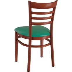 If you’re remodeling your establishment or simply looking for a beautiful seating option, then this Lancaster Table & Seating Spartan Series metal ladder back chair with a mahogany wood grain finish is perfect for you. Use it in a variety of settings, including restaurants, banquet halls, and bistros. You’ll also love that this chair’s green seat and good looks are backed up by its exceptional durability, making it the perfect option for just about any venue or event.