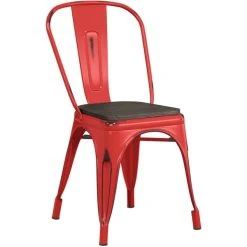 This Lancaster Table & Seating Spartan Series metal ladder back chair with a mahogany wood grain finish is perfect for a variety of settings, from restaurants and banquet halls to cafes and bistros. Although it is constructed from durable metal, it has a unique wooden appearance. You’ll also love that this chair’s navy blue seat and good looks are backed up by its exceptional durability, making it the perfect chair for just about any venue or event.