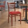 Whether you own a trendy restaurant or a cozy coffee shop, we’ve got you covered. With the Lancaster Table & Seating Spartan series metal ladder back chair, you can provide your customers with a comfortable yet sturdy place to sit. This product features a walnut wood grain finish and navy vinyl seat that are sure to match any color scheme or atmosphere. Best of all, the durable design of this product makes it great for fast-paced environments.